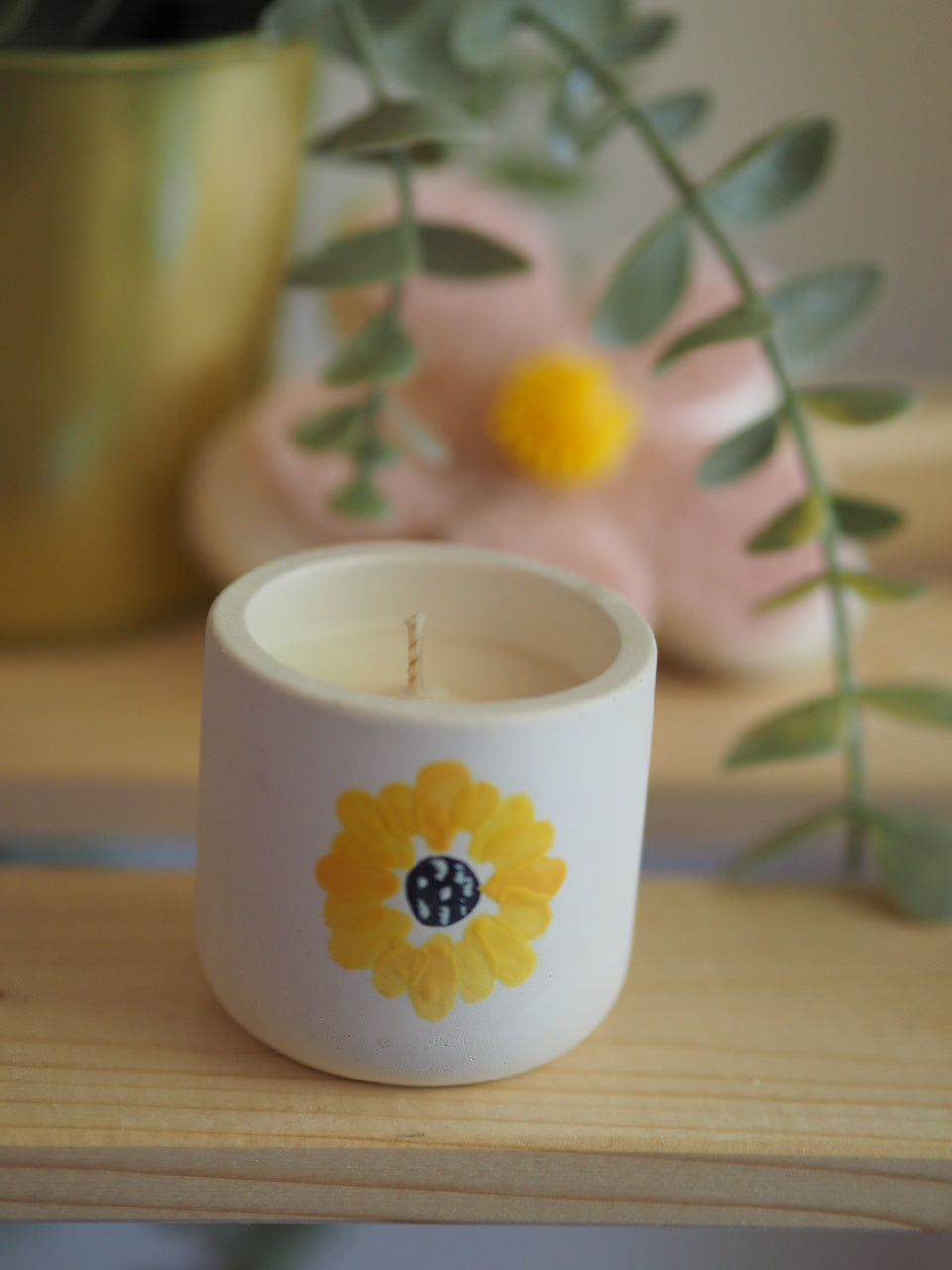 Χειροποίητο Δοχείο από Τσιμέντο-Μαργαρίτα Με Κερί Σόγιας