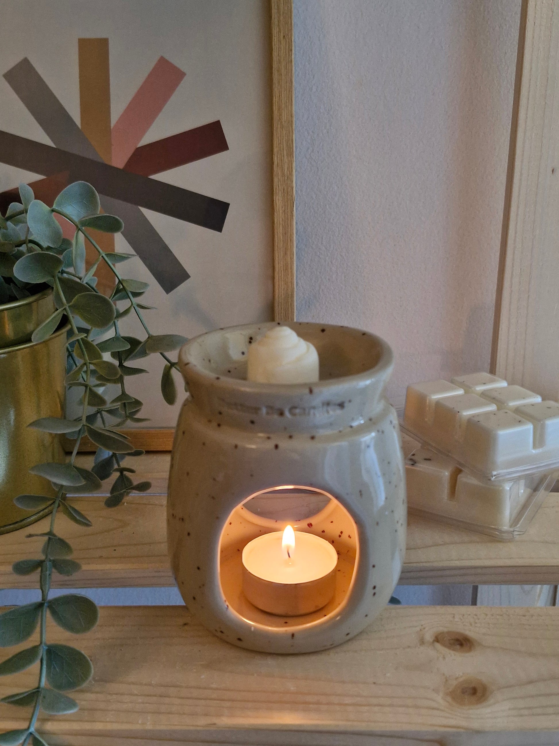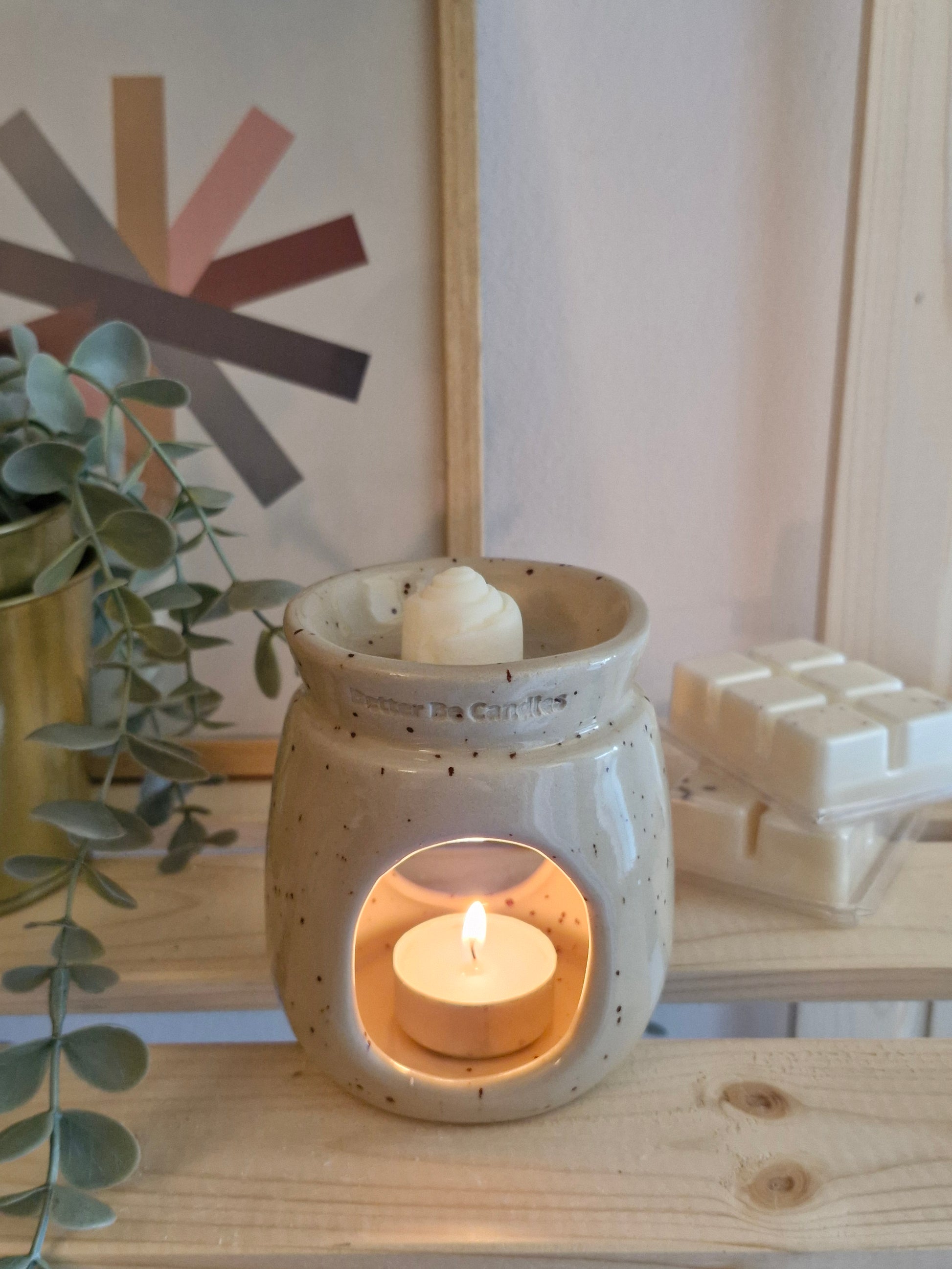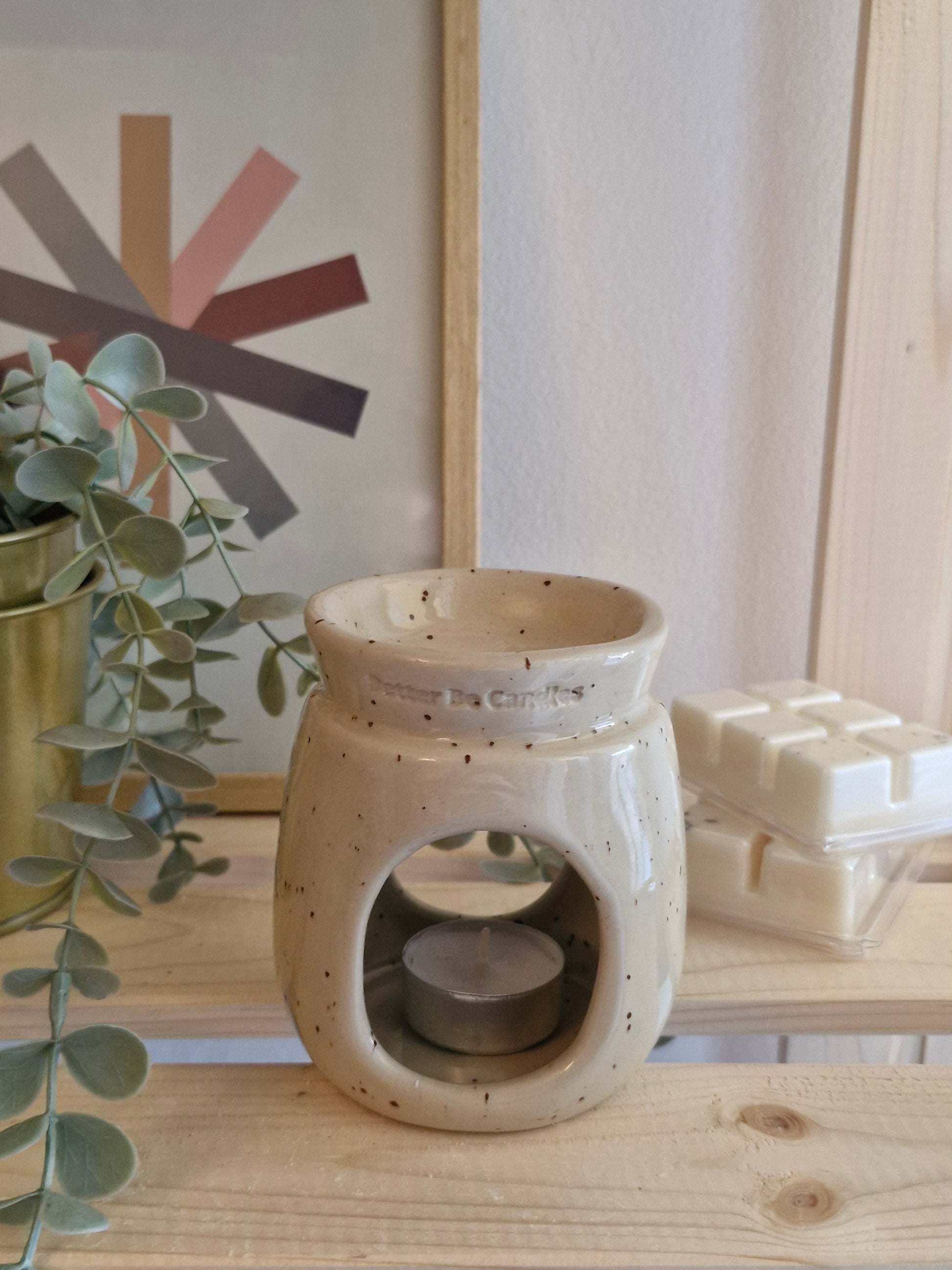 Ένας προσεγμένος, χειροποίητος κεραμικός καυστήρας/αρωματιστής, σχεδιασμένος σε συνεργασία με την Diesblon, αποκλειστικά για το Better Be Candles. Διαθέτει φυσική μπεζ απόχρωση με μπορντό πιτσιλιές και το λογότυπό μας χαραγμένο επάνω του, δίνοντάς του μια minimal αλλά ζεστή αισθητική που ταιριάζει σε κάθε χώρο.