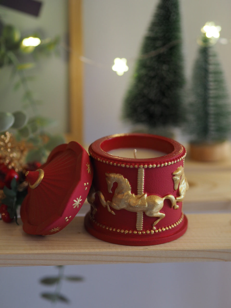 Χερoποίητο Δοχείο Κερί Καρουζέλ Κόκκινο
