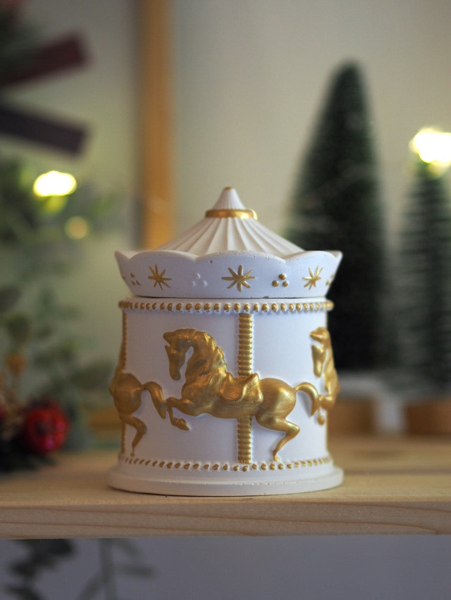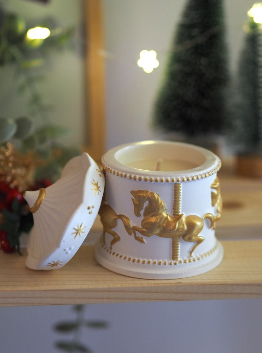 Χερoποίητο Δοχείο Κερί Καρουζέλ Λευκό