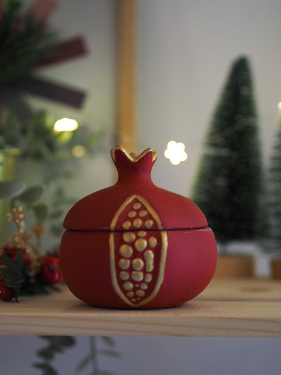 Χερoποίητο Δοχείο Κερί Ρόδι Κόκκινο